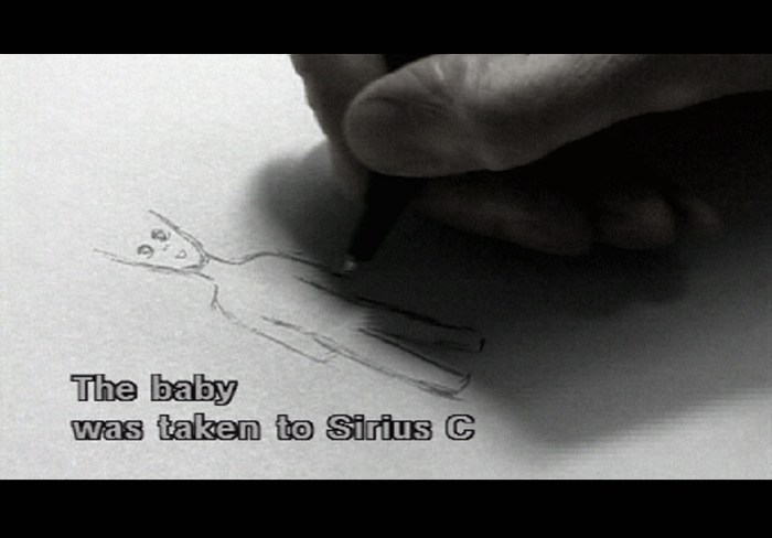 Anne Pajuluoma, who is living in Helsinki, is longing for getting to another planet Sirius-C to live there together with her daughter who was spirited away to that distant star by aliens during Anne’s pregnancy. It is documented that she was pregnant nine years ago and was ordered to go to a hospital to have a cecarean there, but in the operation it was noticed that there was no baby. In the film My Baby Was Taken to Sirius-C Anne notes, as if to explain to viewers, that the baby was taken by the aliens who have different technology from ours, “they can walk through walls”.